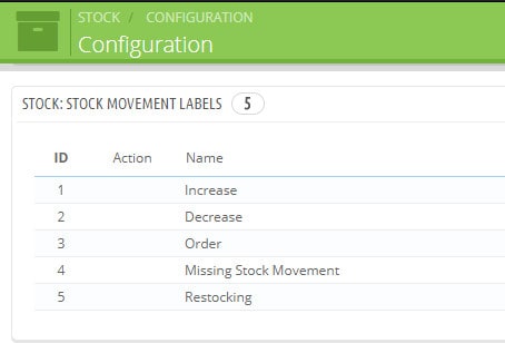 The menu is empty because the labels are not setup in PrestaShop backoffice > Stock > Configuration > Stock: Stock movement labels