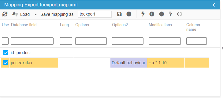 You can enter a mathematical formula in the 'Modifications' column in the mapping to apply a calculation on the exported value: