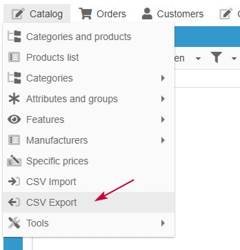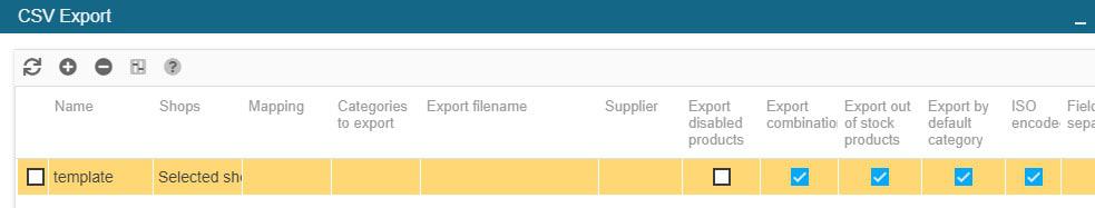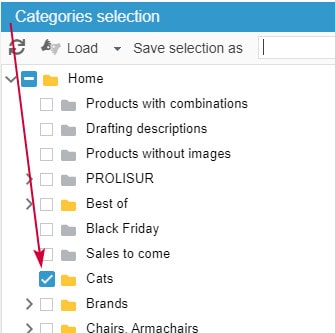 - On the Categories panel, select just one category, with just a few products (no need to export all your products because we're just creating a template file)
