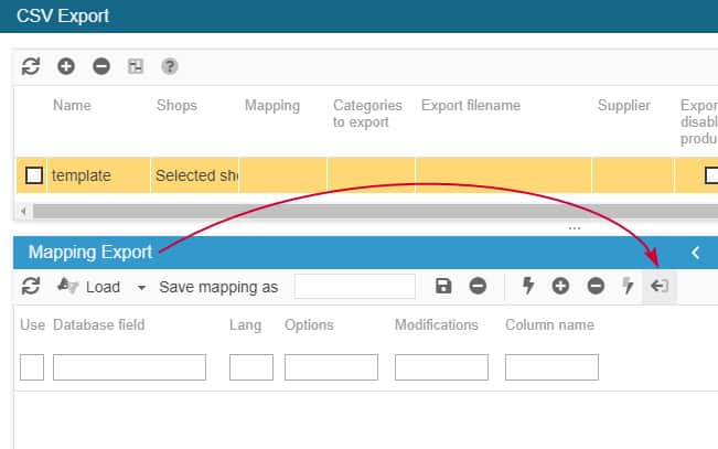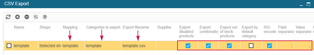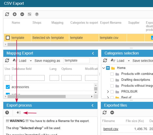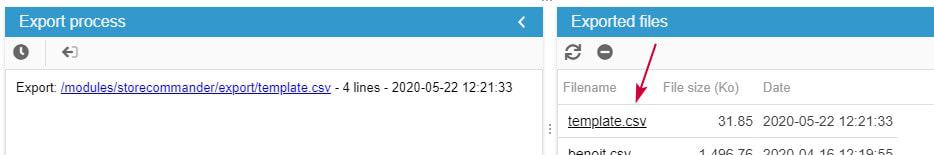 -> in the 'Filename' colunm, double click to enter the name of the file to export, like template.csv - dont forget .csv