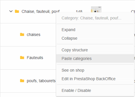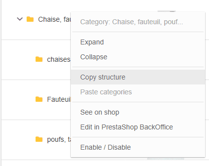 This copy/paste option can be found within the interface dedicated to Categories, accessible from Catalog > Categories > Category Management.