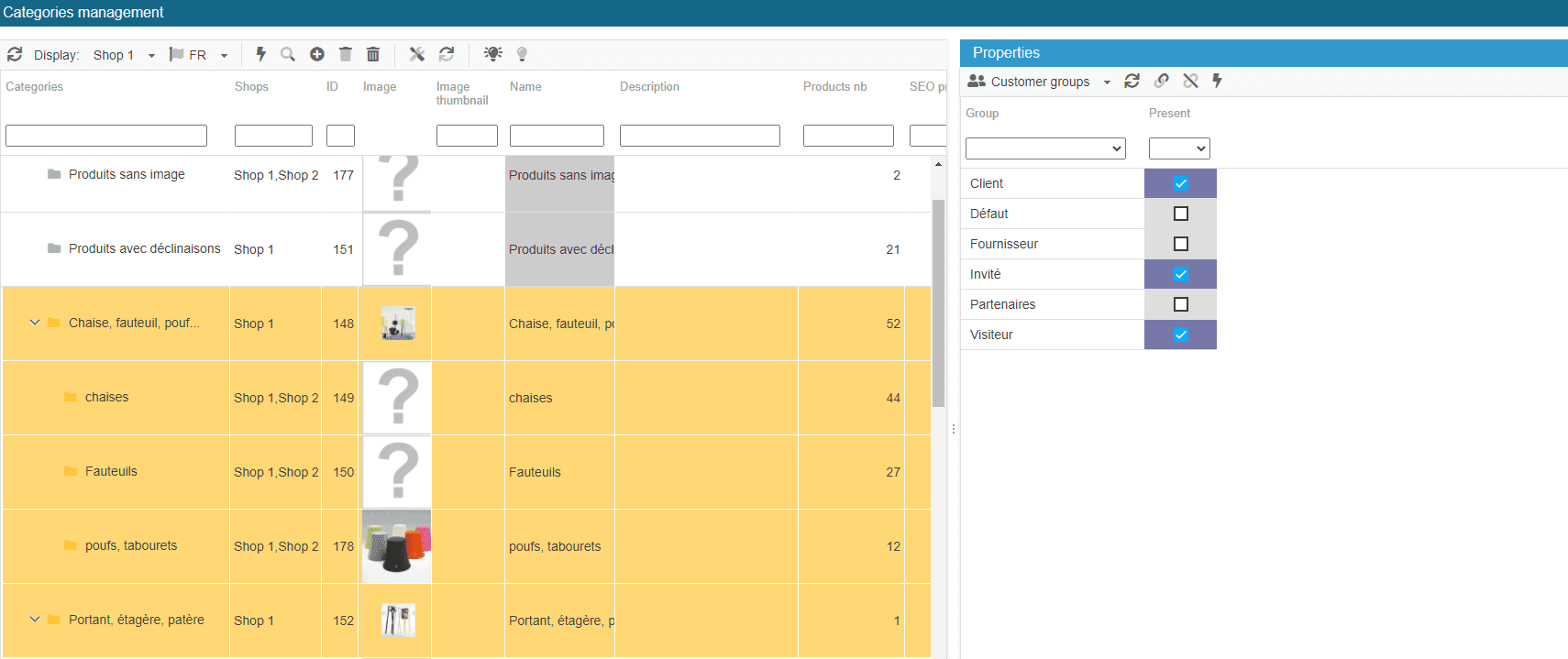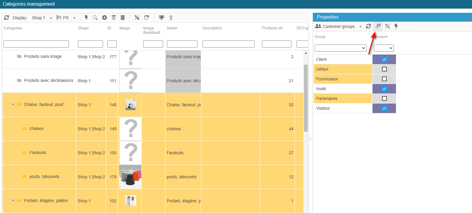 With the interface dedicated to categories in Store Commander, you can quickly associate customer groups to your categories.