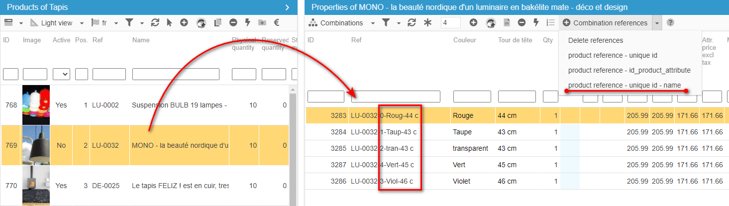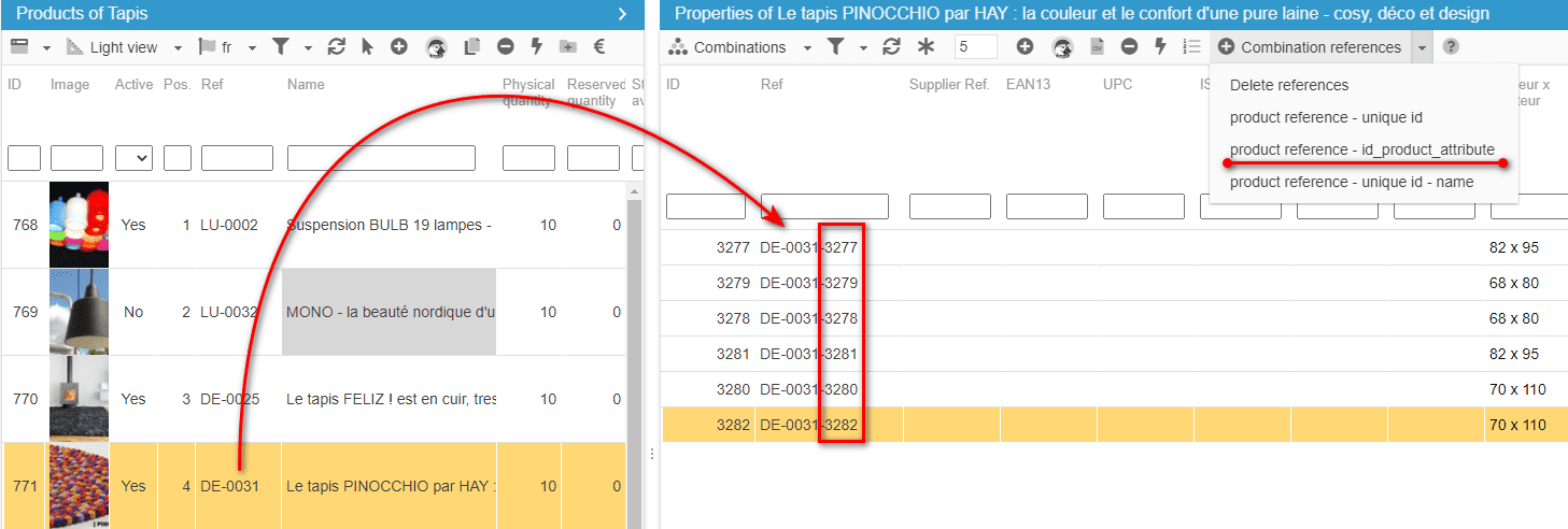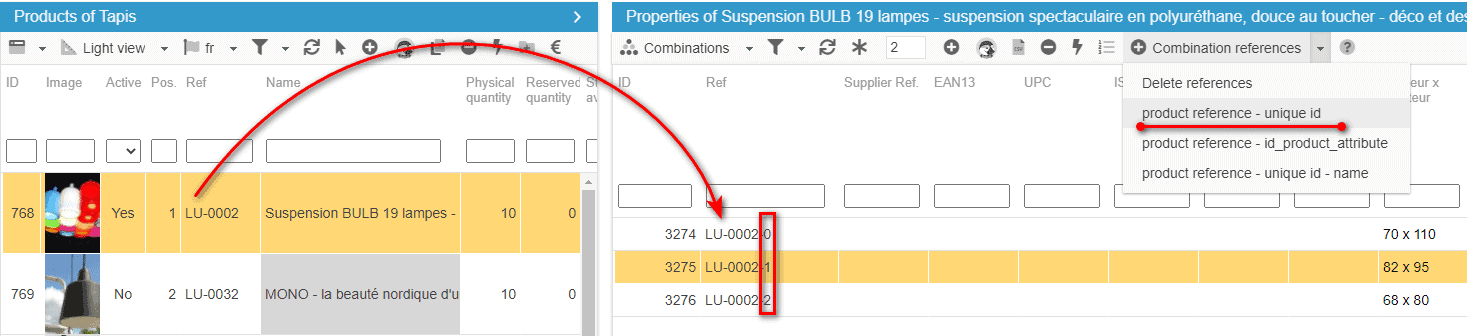As from now, you can setup lots of unique references on combinations to fill the gaps within your catalog, in such an easy and fast manner!