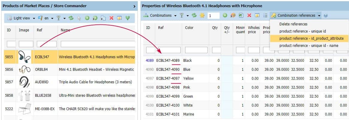 Product reference - id_product_attribute