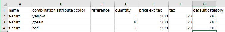 Here is the CSV file for the example of a t-shirt in 3 colors:
