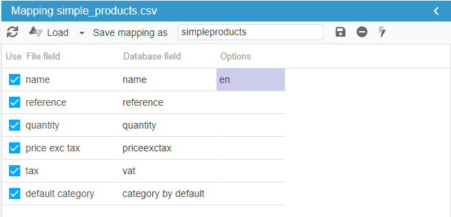 To create these 3 new products, we load the csv file in the import window of Sc