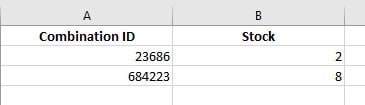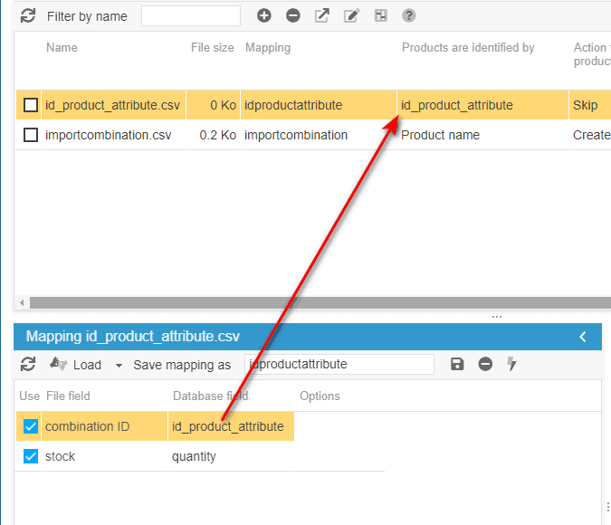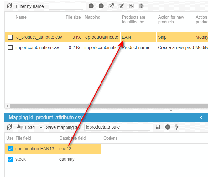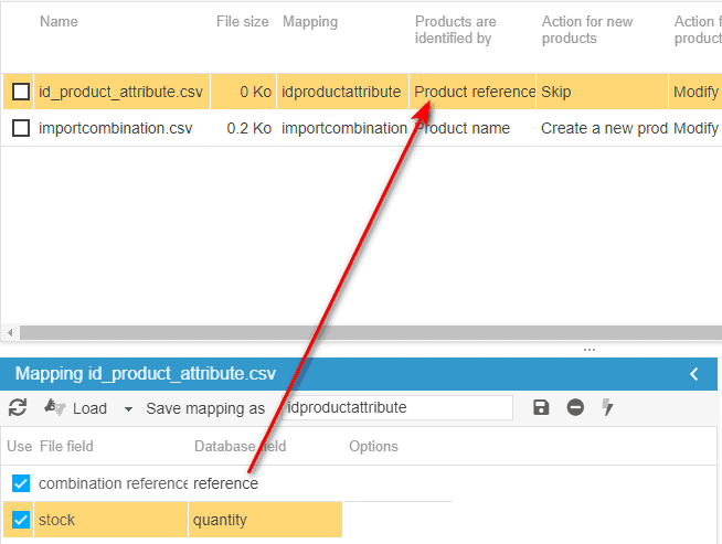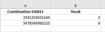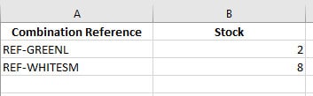 - the combination identifier, meaning the combination reference or its ID or even its EAN13/UPC code. The important thing is that the identifier chosen is unique on each combination (no duplicate)