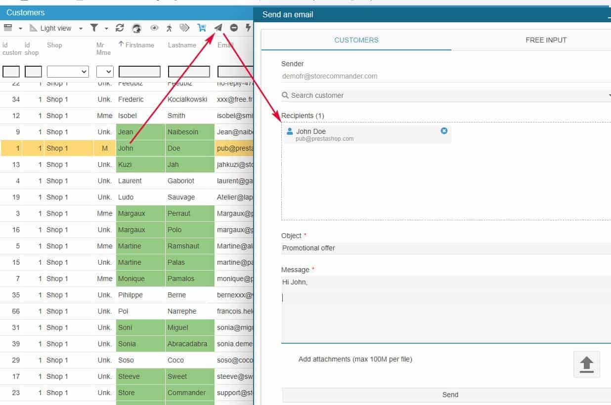 You can send emails to your customers within the Customer Service interface in Store Commander, accessible from the Customers menu.