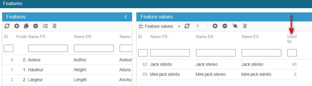You can visualize the number of products using a specific feature from the Features window, accessible from the Catalog menu.