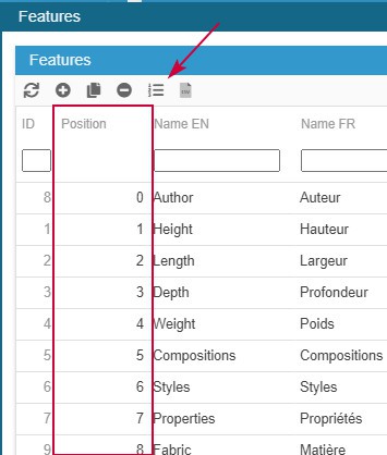 A 'position' column has also been added so that you can change the display order in this panel without having to apply it on the front office.