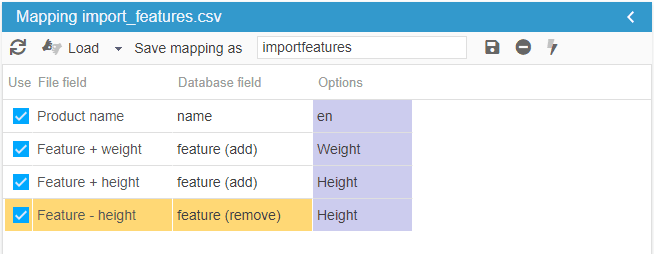 Multiple features can also be managed in bulk using Store Commander's CSV import tool.