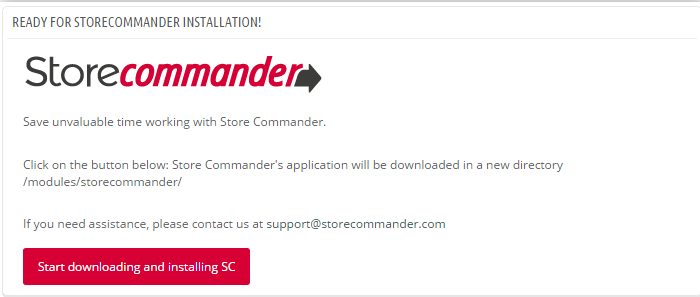 The installation has completed, you can launch the module by clicking on 'Start Store Commander'