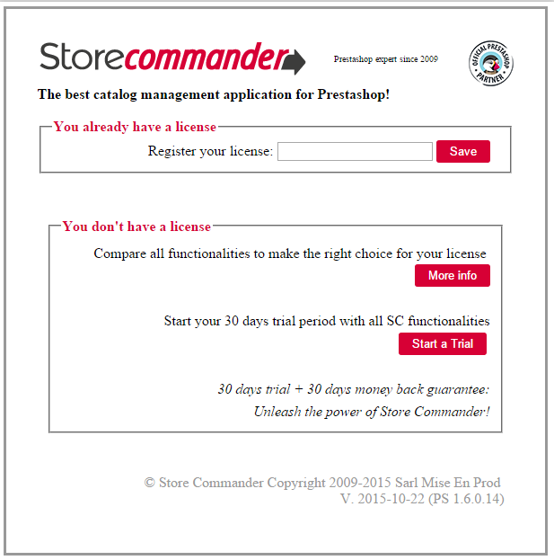 The license successfully validated, Store Commander's interface opens up. You are now ready to manage your store in a fast and efficient manner.