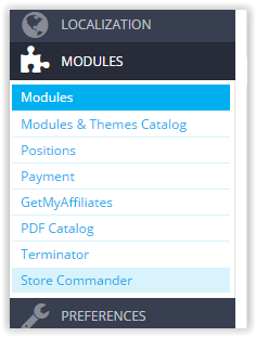 If Store Commander was not automatically added to the Modules menu in PrestaShop backoffice, follow the below instructions to insert it in the list.