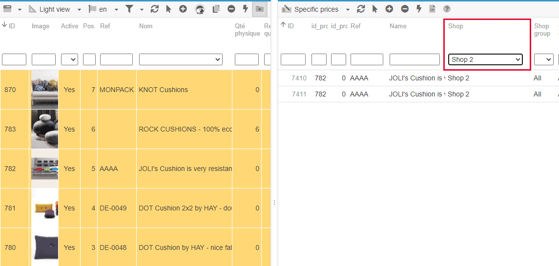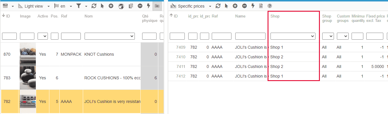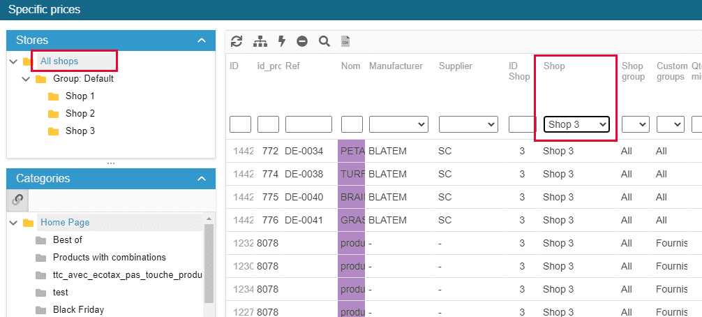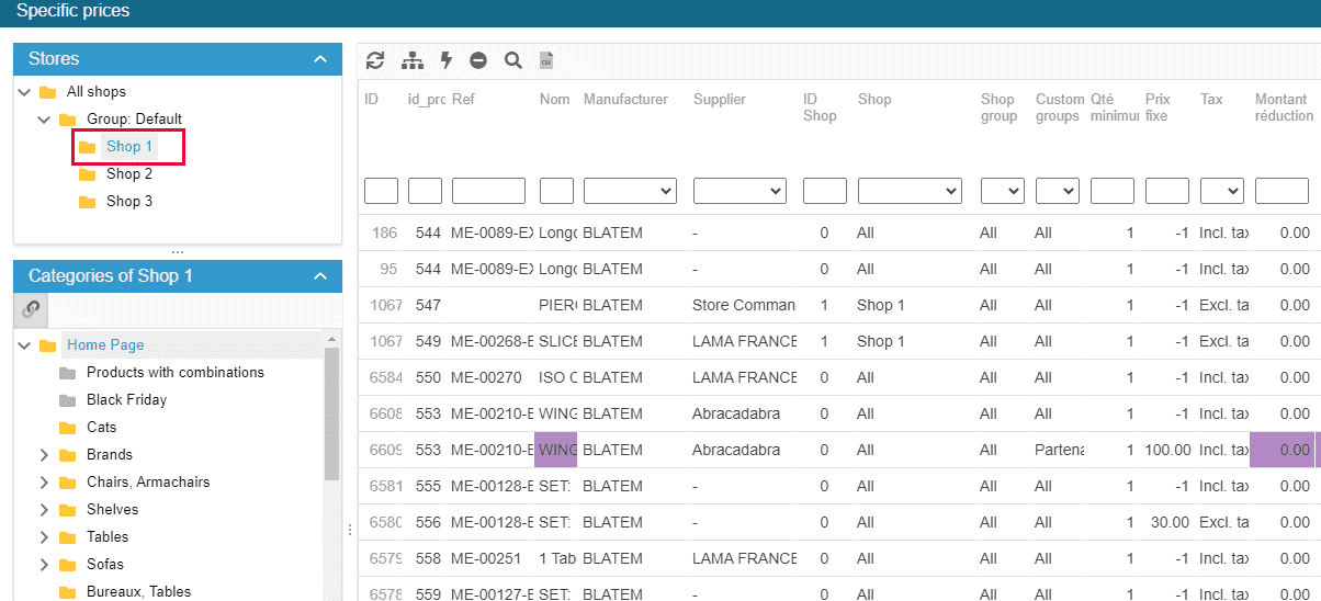 You'll then be able to display all existing specific prices for a specific shop, by selecting it in the Store Tree.