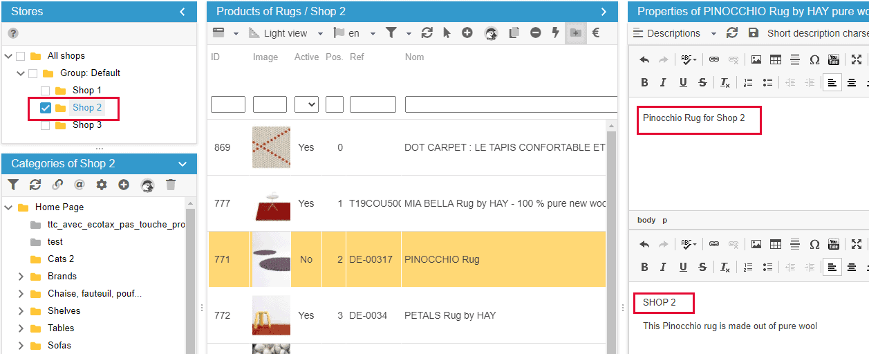 MultiStore - Writing a different product description for each shop