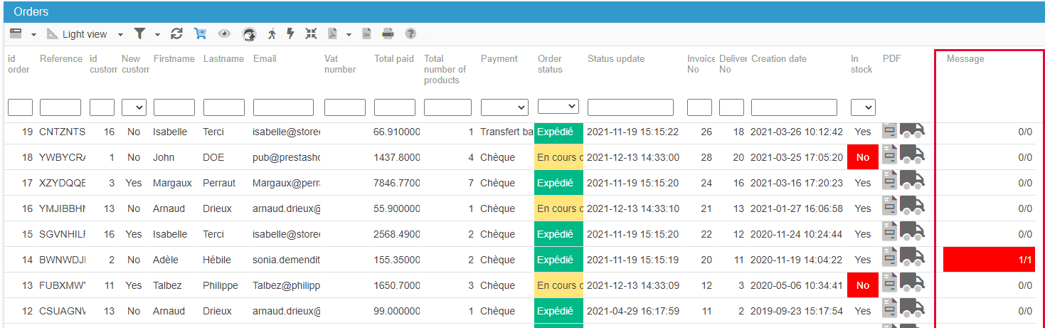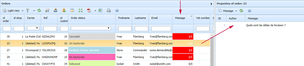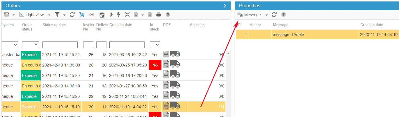 You can then use the Customer Service interface in Store Commander to reply to customer messages.