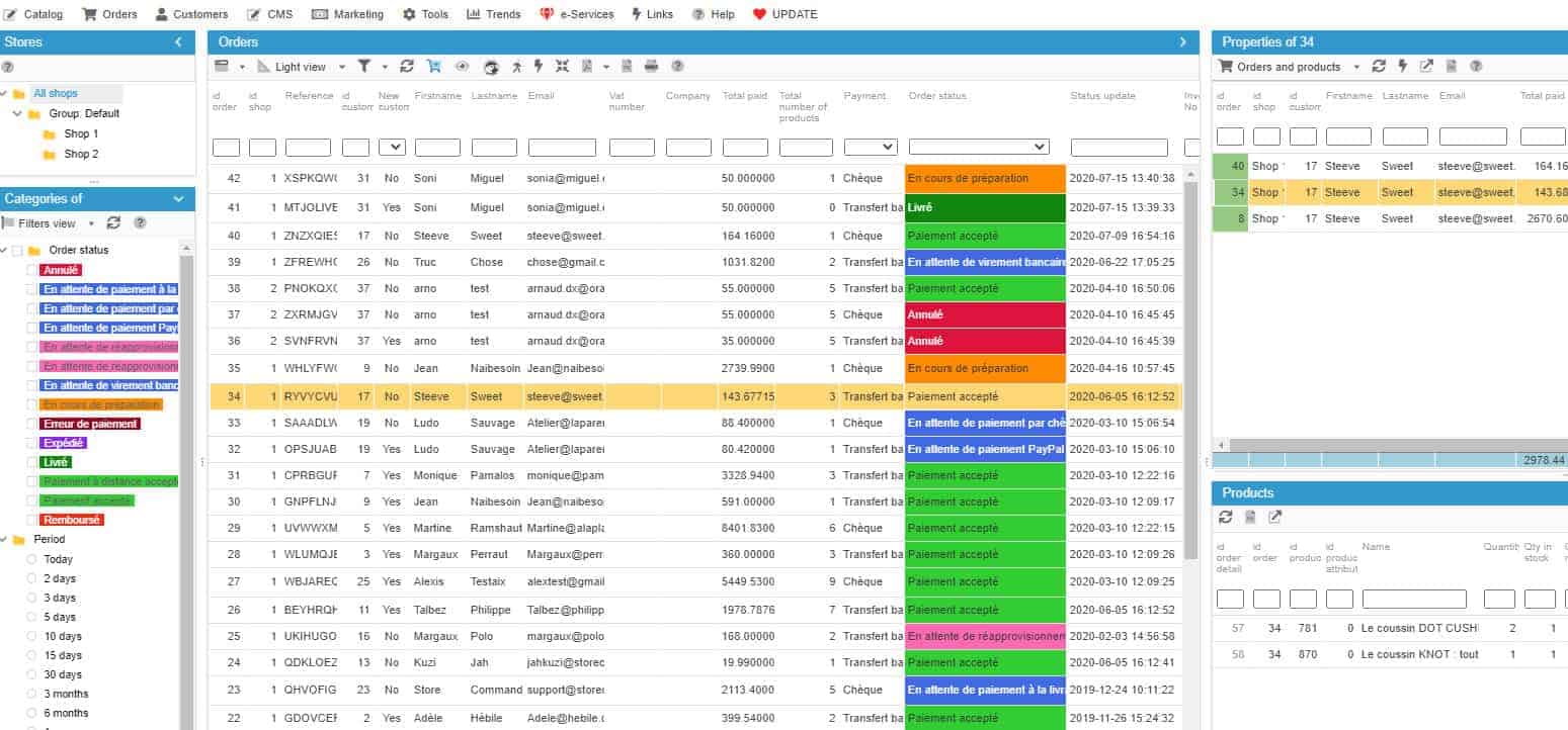 With the ORDER interface in Store Commander you can have a global view of all your customer's orders.