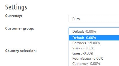 If you need to create a PDF catalog showing prices associated to a specific customer group, you can select this group within the configuration page: