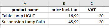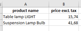 - price excl. tax or price incl.tax + TVA
