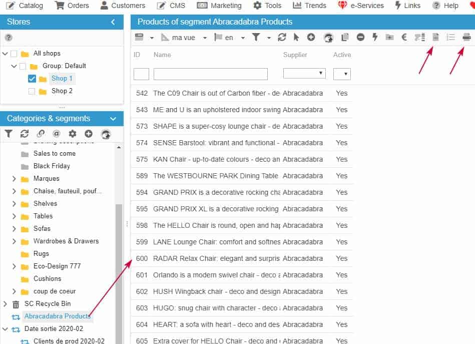 Segments you created are present in Sc interfaces (catalog, orders, customers) and their contents are displayed in Sc central column (light, large view, etc.).