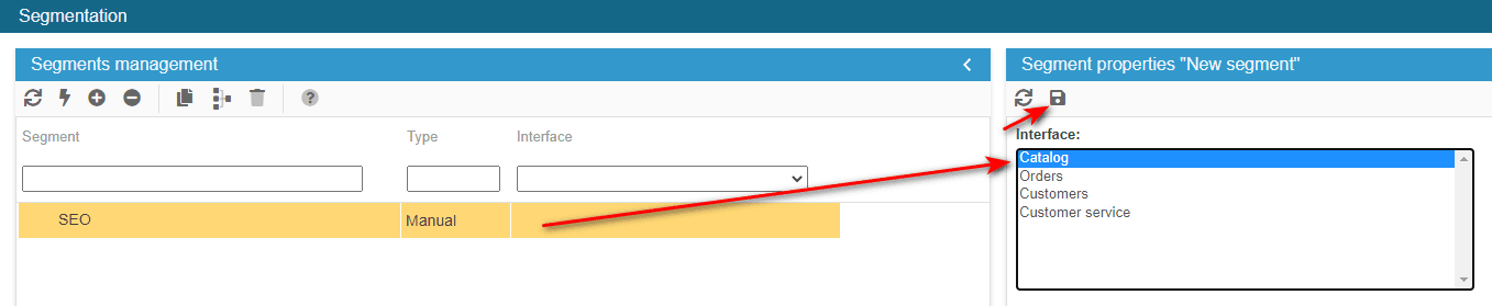 • We now need to associate the interface in which the segment will be displayed and used. Here it will be the Catalog interface.