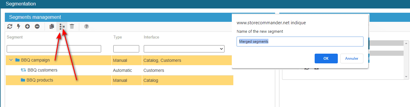 For instance, if you wish to merge two folders into one, a new segment will be created that will include the interfaces and elements of the two selected segments.