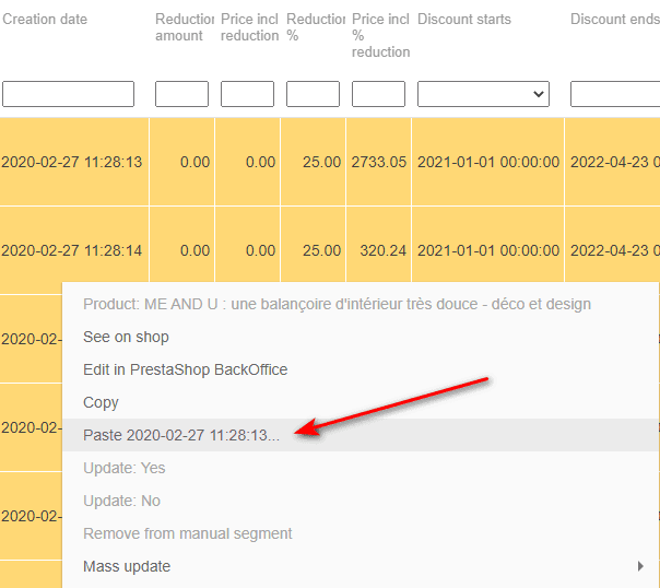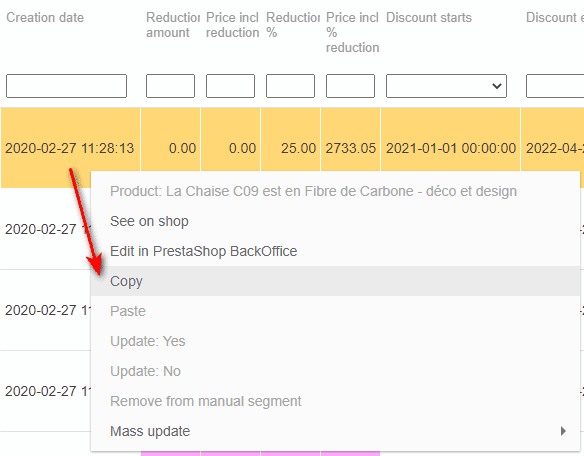 To apply the same modification onto other product, use the copy/paste option.