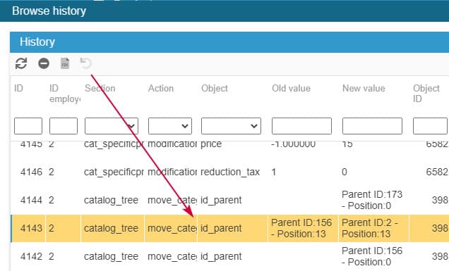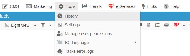 Most modifications made manually within Store Commander's interface (80%) are logged under 'History', accessible from Tools menu