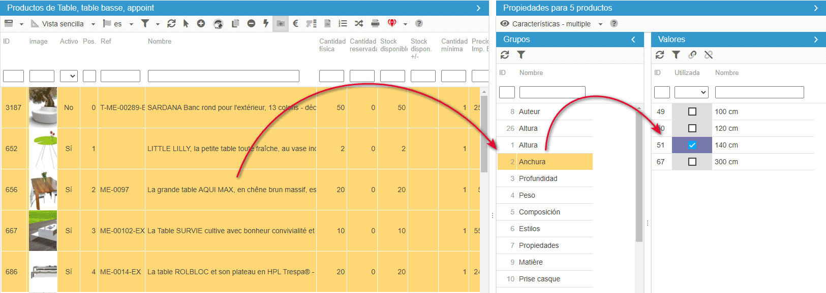 Gracias a las opciones de multiselección y asociación masiva de Store Commander, podrá asociar sus características a sus productos en tan sólo unos segundos.