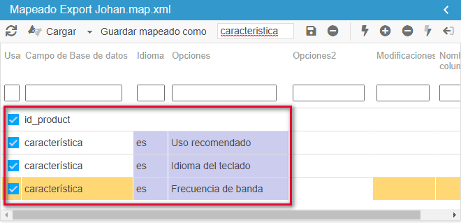 En mapping, utilice el último icono para rellenar los campos automáticamente.