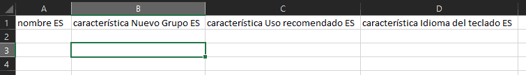 El hecho de que el nombre del grupo se rellene automáticamente permitirá crear el grupo si no existe. Por lo tanto, es imperativo respetar la sintaxis de los encabezamientos de las columnas de características en su archivo csv.