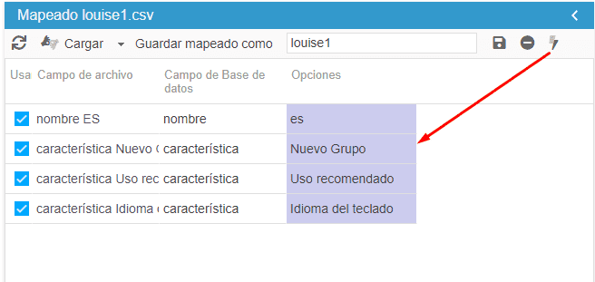 Cuando cargue su archivo csv en la ventana de importación de Sc, en la sección de mapeado, haga clic inmediatamente en el icono