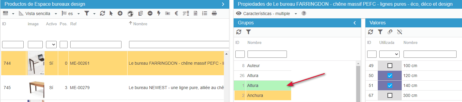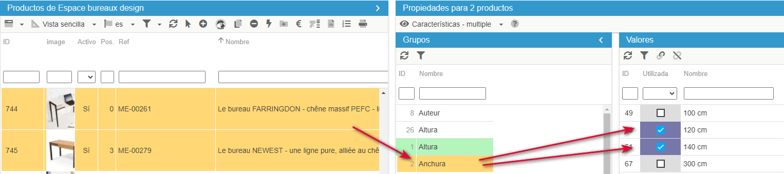 A partir de las versiones Ps 1.7, se incluye por defecto la gestión de varias características. Esto significa que ahora puede asociar varios valores de características del mismo grupo a sus productos.