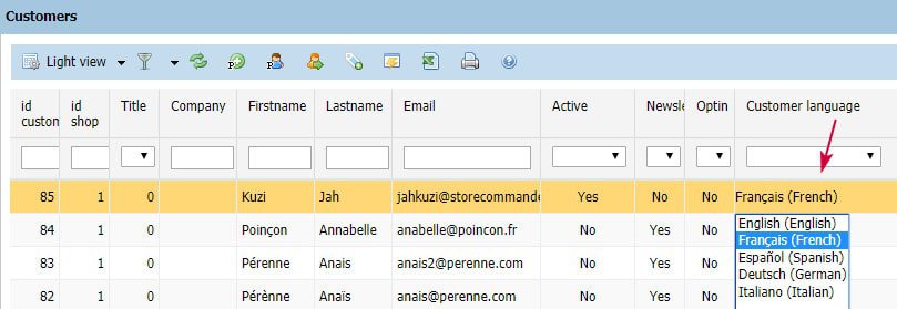 Si necesita cambiar el idioma de una cuenta de cliente, no se preocupe con Store Commander: