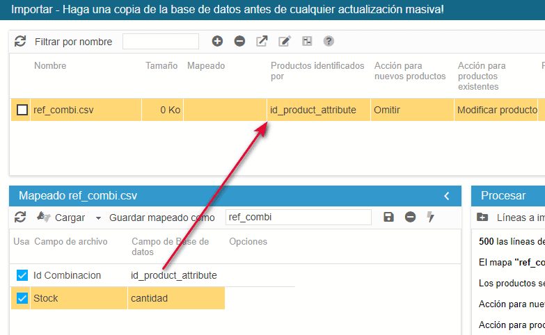 Actualizar el stock de combinaciones mediante la importación CSV