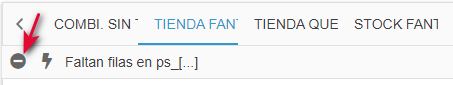 Verá cuál será la corrección aplicada pasando el ratón por encima del icono. En el siguiente ejemplo, la subsanación del error hallado consiste en suprimir los productos fantasma mostrados. Bastará con seleccionarlos (con el icono de selección en masa ) y suprimirlos haciendo clic en el icono propuesto , en este caso supresión de los productos.