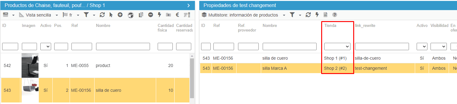 Al trabajar en modo multitienda, sus productos pueden estar presentes en diferentes tiendas con información específica por tienda, como nombre, precios, existencias, etc.