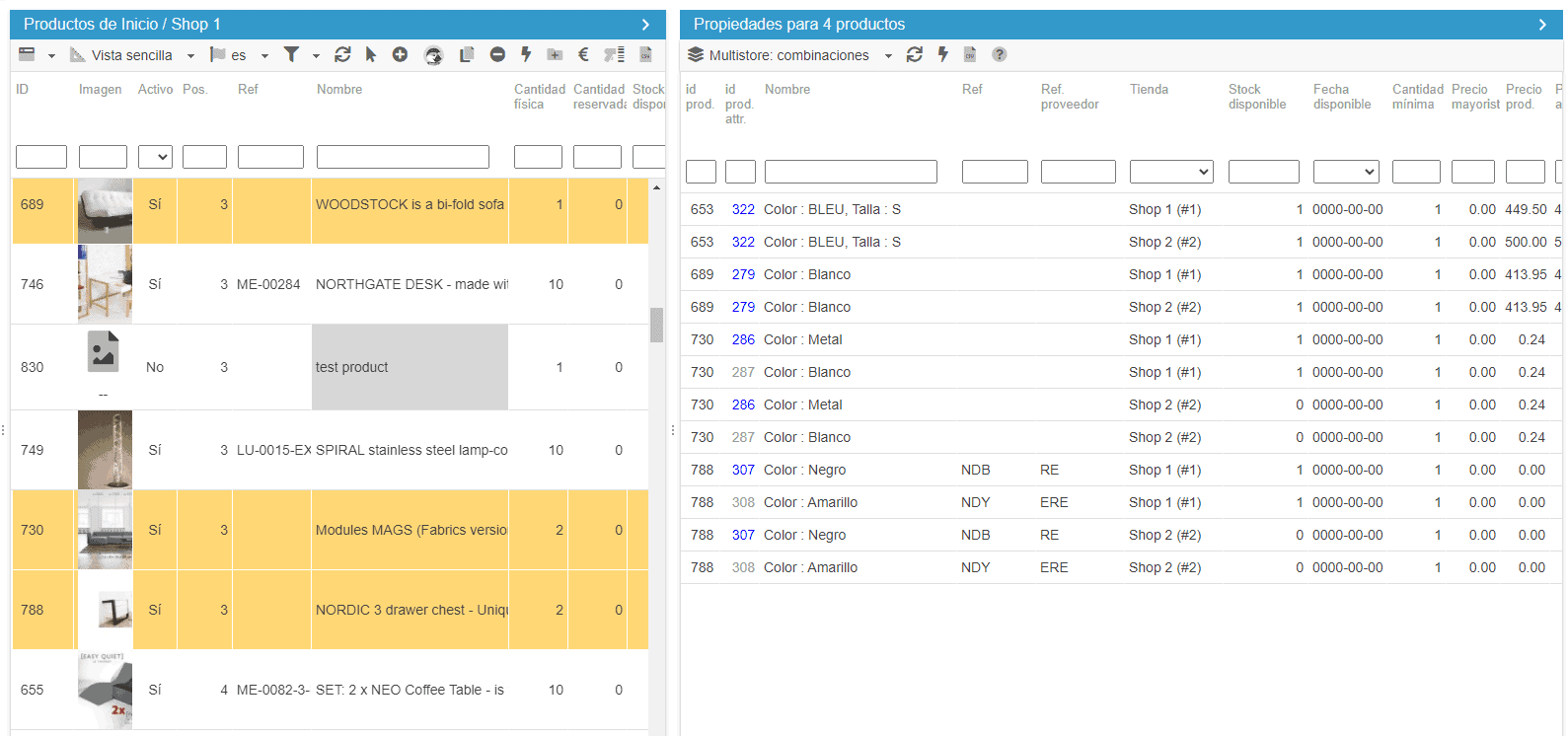 Tenga en cuenta que, por supuesto, puede seleccionar varios productos para mostrarlos y trabajar en masa en múltiples combinaciones.