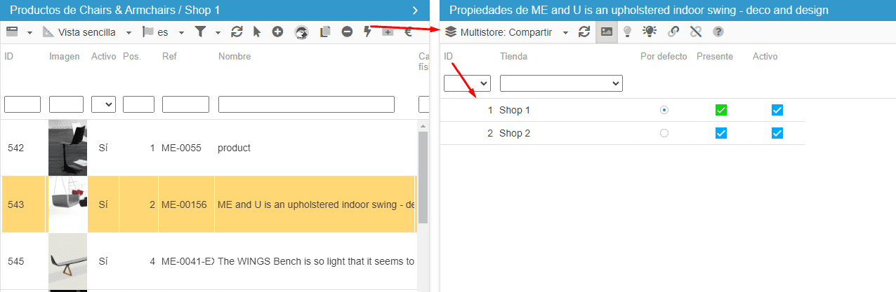 2- Desde el panel de propiedades > Multitienda: Compartir: