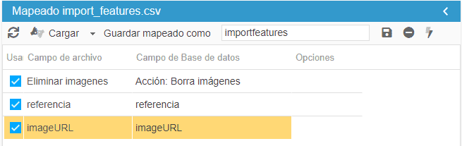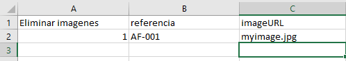 El orden de las columnas es importante. La eliminación debe tener lugar antes de la importación de las nuevas imágenes, por lo que la columna "eliminar imágenes" debe estar antes de la que contiene la URL de las nuevas imágenes.