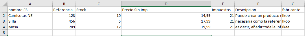 Puede crear un producto desde cero, es decir, añadir toda la información necesaria como la referencia, la cantidad, el precio, las imágenes, las descripciones, el fabricante, las características, los metadatos, etc., ¡en una sola importación!