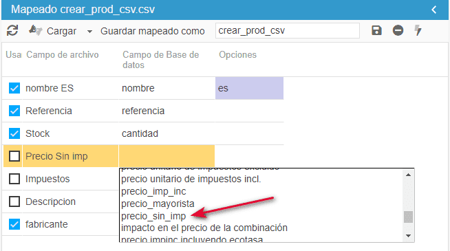 Después de seleccionar el archivo, configure el mapeo, haciendo coincidir los campos de la base de datos con los títulos de su archivo.