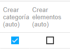 Marque las opciones si su importación debe crear categorías y elementos como proveedores, fabricantes, tags, características: