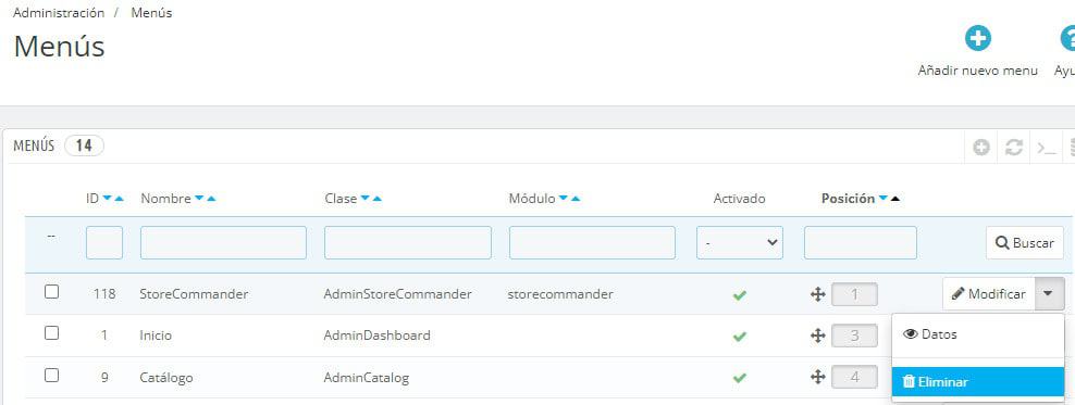 A partir del backoffice PrestaShop > Administración > Menús > Módulos > Mostrar los detalles.