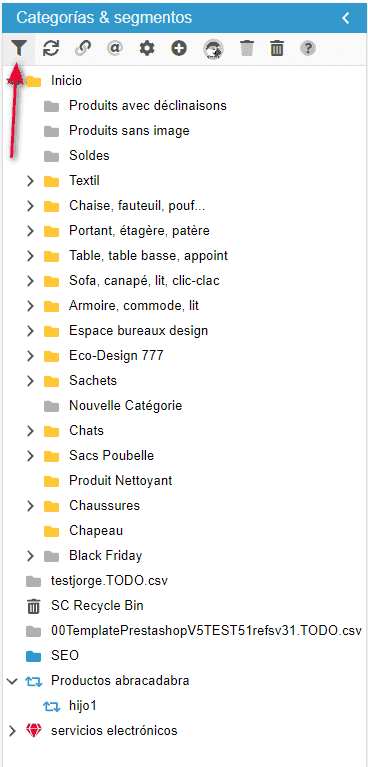 Basta con activar el icono del filtro en la barra de herramientas de la categoría. El icono tendrá un fondo ligeramente gris cuando la opción esté activa.