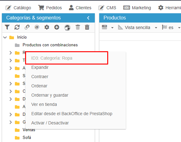 1- Desde la interfaz de Store Commander > Catálogo > Categorías > Gestión de categorías