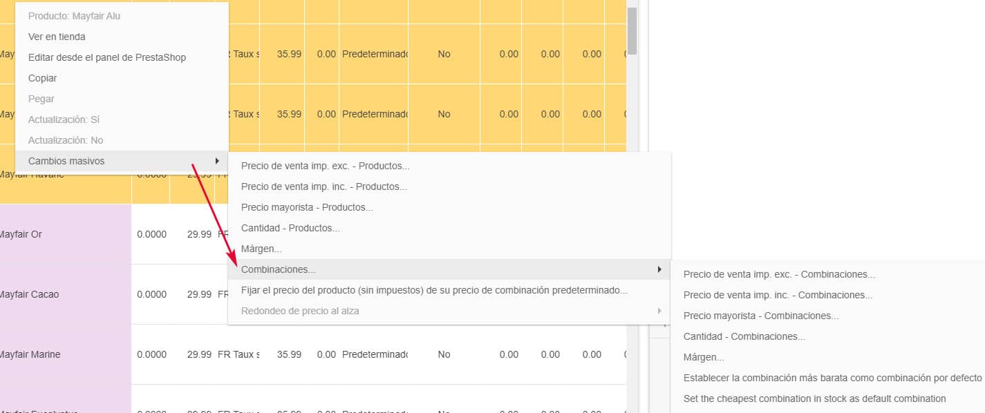 Store Commander le permite redondear el precio de sus productos en masa pero también los de las combinaciones muy rápidamente.