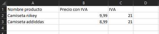 Si quiere importar el precio con IVA incluido, debe incluir el IVA en su archivo: