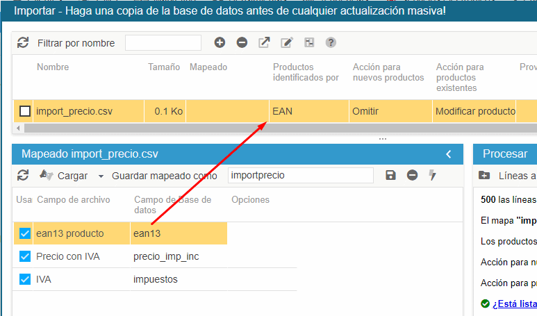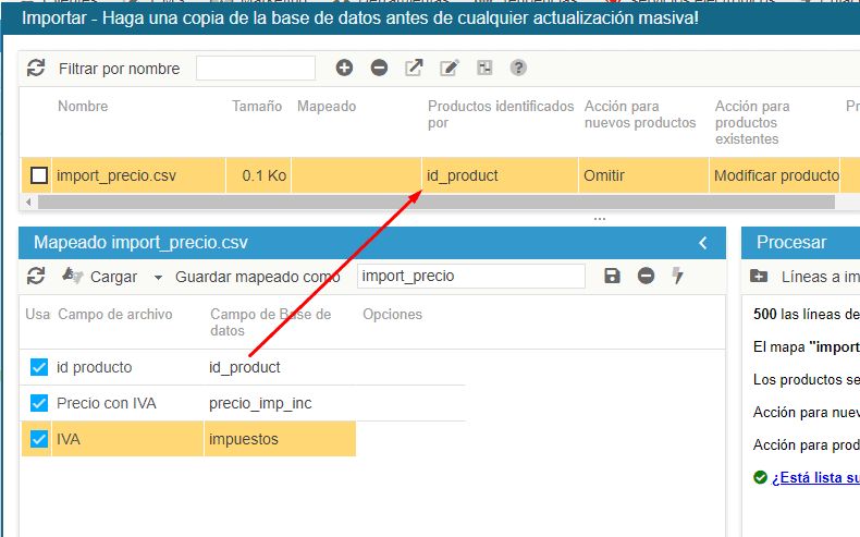 - El identificador del producto, es decir, el nombre del producto, su ID, su referencia o su código EAN13. Lo importante es que ese identificador sea único en cada producto (que no esté duplicado).